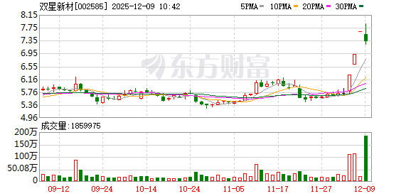数据宝统计,步调09:50,双星新材成交额10.42亿元,创2023年7月6日以来新高。换手率15.46%。上一交往常该股全天成交额为1.58亿元。(数据宝)